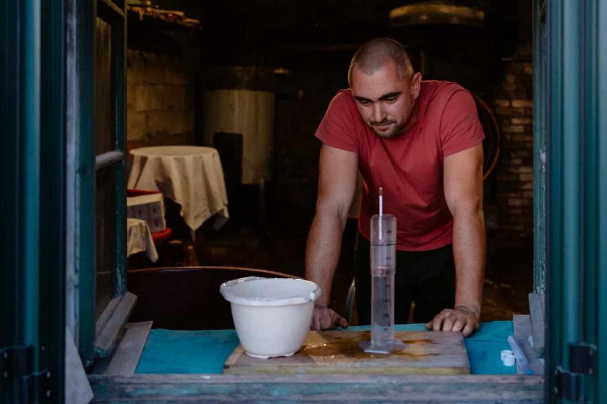 Clive Bevan odlučuje se za dokumentiranje situacije u svom okruženju. On niže scene tijekom „rituala“ pretvorbe grožđa/vina u rakiju. Rakija je snažno alkoholno piće koje se dobiva destilacijom fermentiranog voća. Rakija je popularna na Balkanu, ali i šire. Udio alkohola u ovom piću je 40% i više, često preko 50% u kućnoj radinosti. Autor bilježi upravo starinski, kućni način izvedbe. Tako je ambijent neuređen, sve se događa u nekom podrumu. Autor tumači da su ga, osim radnje, privukli ljudi i alati koje koriste. Radovi bilježe starinske poluuzidane peći na drva, bakrene sisteme kotlova i sl. Predstavljena je i naporna atmosfera izvedbe procesa. Očita je temperatura u prostoru, isparavanja i ne sasvim jednostavni segmenti neophodnih radnji.
