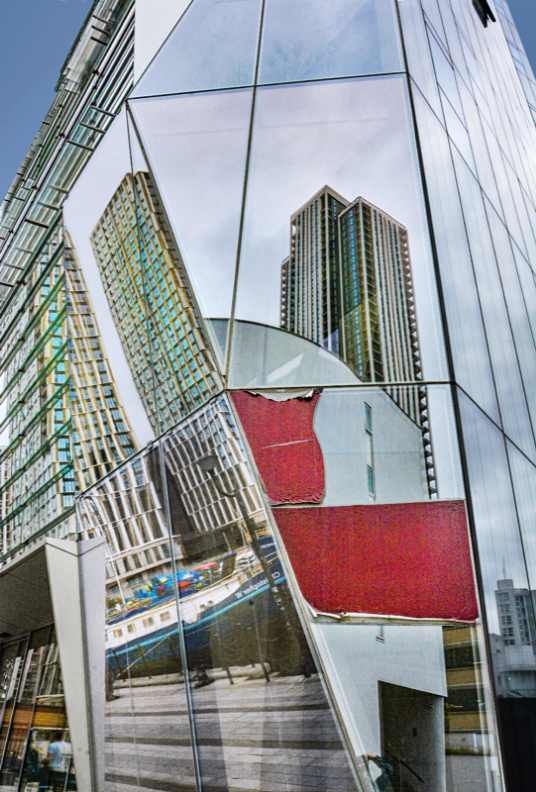 Gordana Johnson nudi kolekciju fotografija koje bilježe urbanu situaciju. Ona se odlučuje zabilježiti relativno svježe izgrađeni novi poslovni centar Londona, Canary Wharf. No ona se ne odlučuje za pejzažno-dokumentacijski materijal, već pokušava predstaviti vizualne odjeke urbane situacije. Na radovima možemo iščitati urbanu atmosferu, pa čak i osluhnuti potmule zvukove velegrada. Osim vode i odsjaja stakala, na radovima nema zelenila, čak ni nekog manjeg gradskog parka i/ili mjesta za odah. Ova otuđena atmosfera, bez obzira na količinu svjetla i kolora, priziva pojmove mjesta i nemjesta. Tehnologija, globalizacija i urbanizacija stvaraju nemjesta lišena identiteta, povijesti i relacija, lokacije koje nemaju u vremenu razvijenu kontekstualizaciju mjesta. Primjeri su aerodromi, trgovački centri, autoceste, brzi restorani… Ovakve lokacije nude uniformiranu arhitekturu, komercijalnu svrhu i brzu prolaznost osoba koje ne komuniciraju osobno.