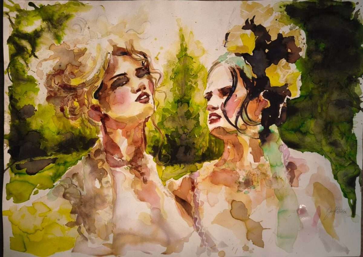 Te opreke polako se zaoštravaju kao nasljedne promjene te postaju kontrasti  u umjetničkom izražavanju majke i kćeri, Marijete i Jane Masten, od izbora tehnike slikarskoga stvaranja, preko motiva i tema do sricanja slikarskoga jezika crtama i plohama, igranja perspektivom i kompozicijom i oblikovanjem stila. Jedna je posvećena akvarelu, tehnici što zahtijeva više iskustva u slikarstvu, druga je posvećena također akvarelu ali i akrilnim bojama, kojom se obično koriste slikari na početku svojega umjetničkoga razvitka. Jednoj su motivski i tematski izvori krajolici ili slike prirode u pogledu koji luta, drugoj portreti nepoznatih, ljudsko tijelo i urbana sredina. Akvarelom se linije razvlače do prozirnosti i pretapaju u samo bojom ocrtanim perspektivama, akrilna tehnika izraženije i gušće gradi sliku, akvarelom se svjetlo i sjena koriste kao ambijentalni okvir, dok se u Janinim slikama linija koristi samo kao naznaka spacijalne komunikacije likova dok sjena prikazuje, pomalo i simbolički, unutarnje odnose i karaktere likova. U Marijetinom slikarstvu ploha i dubina su protegnute u ravninu pred šetačem koji je nasuprot krajoliku, u Janinim slika izaziva pogled da slijedi linije i plohe preko ljudske tjelesnosti ili uporabnih predmeta koji su ukrali perspektivu slike. Te opreke ili kontrasti unutarnji su glas umjetničkoga senzibiliteta, kao i iskustva sazrijevanja i brušenja umijeća, što se na kraju prepoznaje i u estetskoj recepciji – Marijeta je već prepoznata kao amaterska slikarica sa samosvojnim slikarskim opusom, u Janinom slikarstvu naslućujemo talente koji se umnogostručuju i sa svakom novom slikom otkrivaju u svojoj novosti i začudnosti.