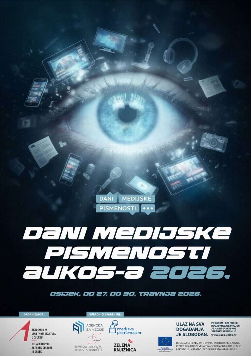 Od ponedjeljka, 27. travnja, do četvrtka, 30. travnja 2026., održati će se Dani medijske pismenosti AUKOS-a 2026. koje organizira Akademija za umjetnost i kulturu u Osijeku (AUKOS) – Odsjek za kulturu, medije i menadžment, u suradnji s partnerima.